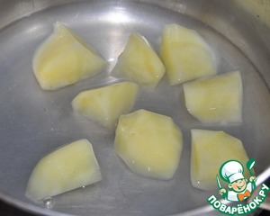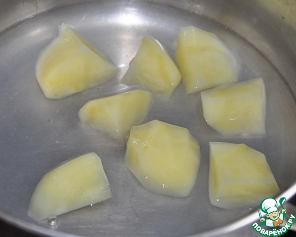 Картофель чистим, не крупно режем, отвариваем до готовности. -