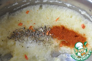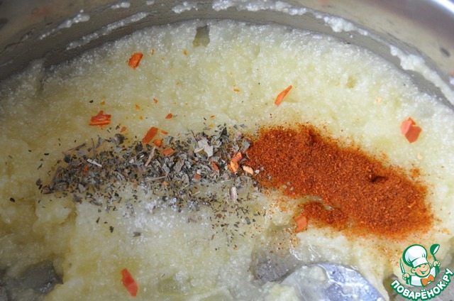 Добавляем паприку, чесночный порошок, хлопья перца чили, сухой базилик, перемешиваем.
