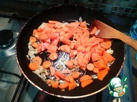 Добавляем морковь почищенную и полукольцами нарезанную. Тушим её почти до готовности. |
