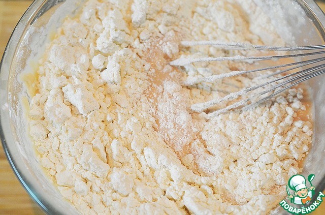 Добавьте муку и перемешайте.