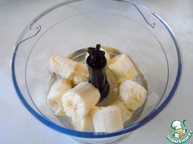 Бананы, яблочный сок и растительное масло взбить до пюре в блендере.