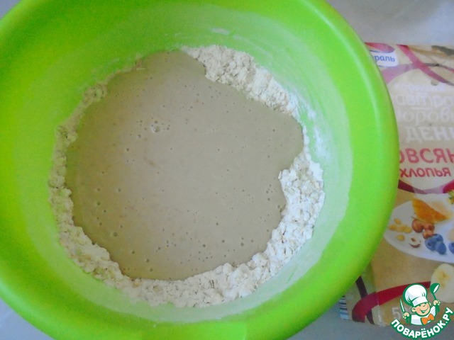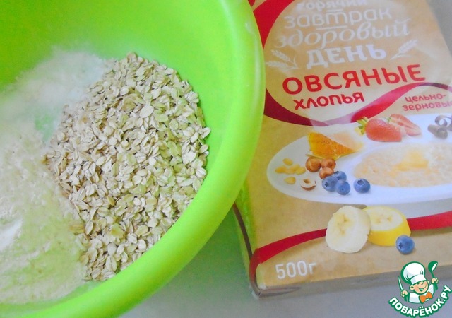 Смешать сухие ингредиенты - овсяные хлопья ТМ Мистраль цельнозерновые, разрыхлитель, соду, ванильный сахар, соль, муку.