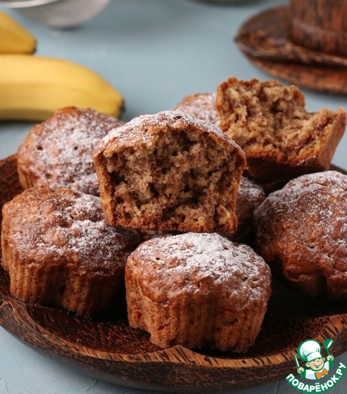 Очень вкусные и полезные овсяные кексы с бананом, посыпать сахарной пудрой и подавать к чаю. Приятного чаепития!!!