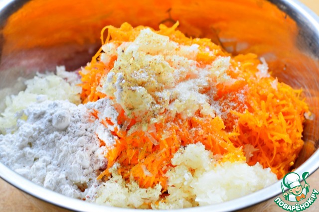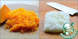 • Тыкву натереть на мелкой терке (приведен вес уже очищенного овоща)
