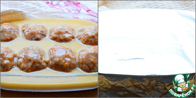 • Из фарша сформировать небольшие тефтели, выложить их в форму для запекания.