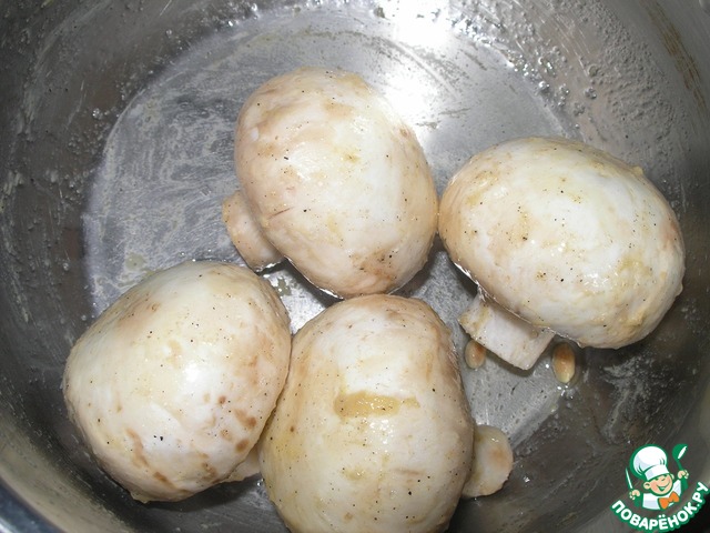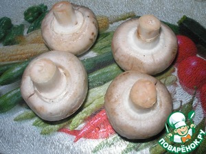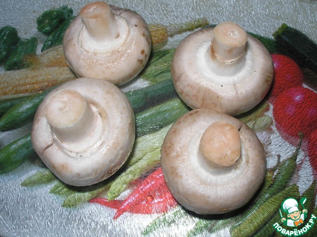 Теперь займусь шампиньоны. Я их собираюсь запечь, поэтому выбирала грибы с закрытой шляпкой, благодаря этому они остаются более сочными, чем если выбрать грибы с полностью открывшейся шляпкой.