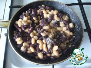 Слить воду с фасоли, выложить ее на сковородку и немного подсушить (чтобы салат не был водянистым).