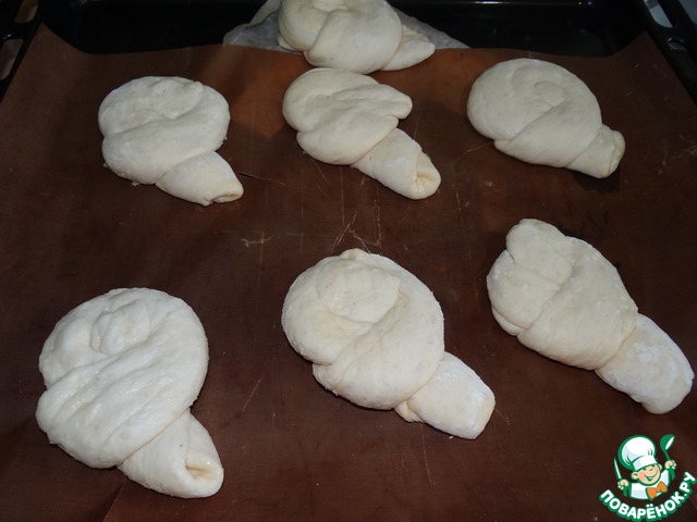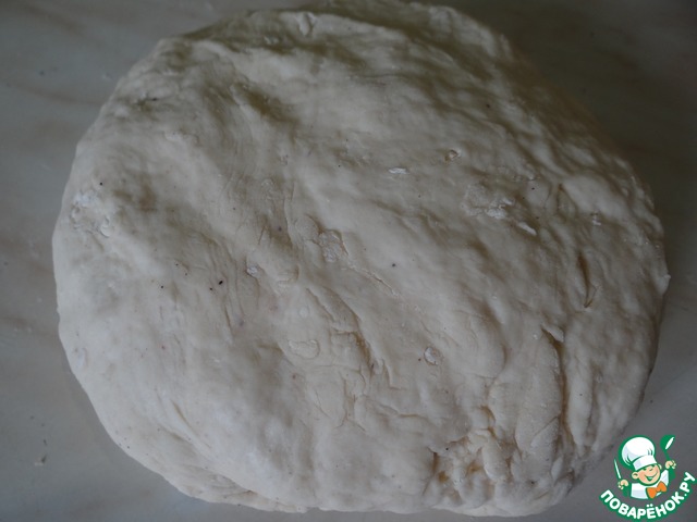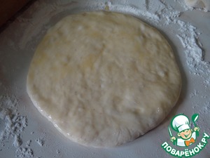 Выложить на противень застеленный пергаментом и смять в лепёшку.