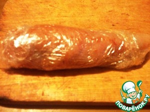 Готовый рулет завернуть в пищевую плёнку.