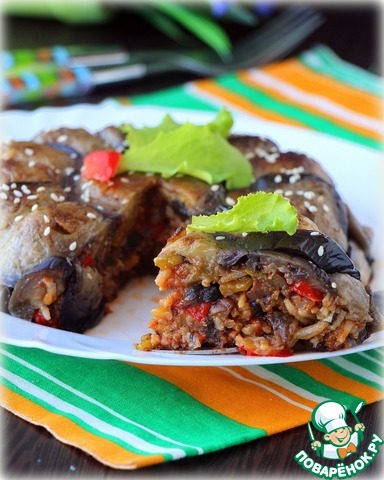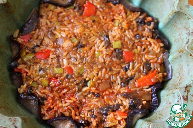 Запеканка с рисом и баклажанами