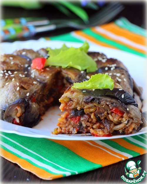 Замечательная запеканка из риса с овощами в баклажанной корочке наполнит восхитительным ароматом Ваш дом.