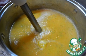 Взбиваем блендером, если у вас мало бульона добавьте с отваренной цветной капусты, даём супчику ещё 5мин. покипеть...