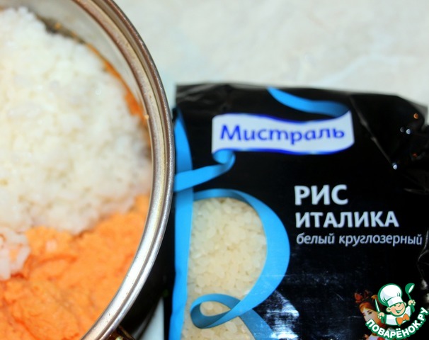Чечевицу измельчить блендером до однородности. Рис Италика ТМ Мистраль отварить в 300 мл воды. Этот рис при варке слипается. что необходимо для нашего блюда. Смешать его с чечевицей.