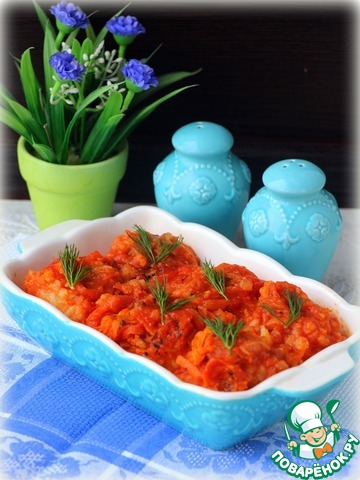 Соль, сахар, перец, базилик, 500 мл воды, томатную пасту смешать и вылить в сотейник. Тушить под крышкой 30 минут. Можно также запечь в духовке, закрыв форму фольгой.