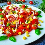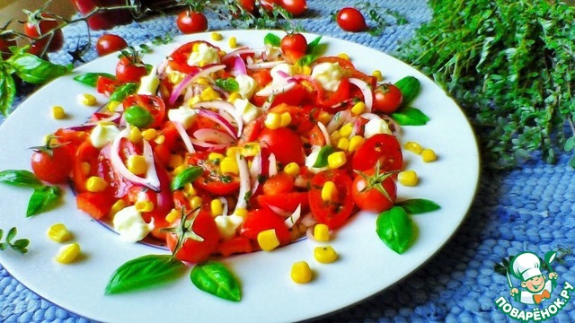 Очень простой, но в тоже время необычный салат. Его вкус не оставит вас равнодушными. Сочетание болгарского перца, кукурузы и помидор дают изысканный и неповторимый вкус! Попробуйте и вы!)