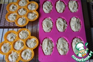 • Духовку прогреть до 180 градусов. Тесто выложить в подготовленные формочки.