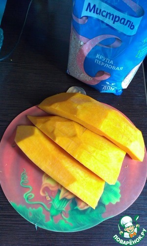 Перловку промыть, залить водой на час. Тыкву почистить, порезать. Поставить в разогретую духовку и запечь. Остудить, пюрировать.