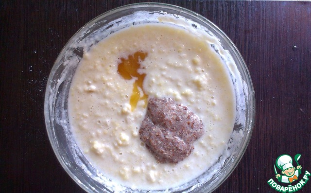 Добавить к тесту готовое "льняное яйцо" и мёд. -