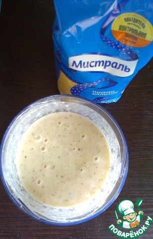 Сваренное пшено смешать с водой в блендере, всыпать дрожжи, сахар, растительное масло, муку, перемешать.