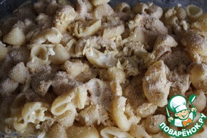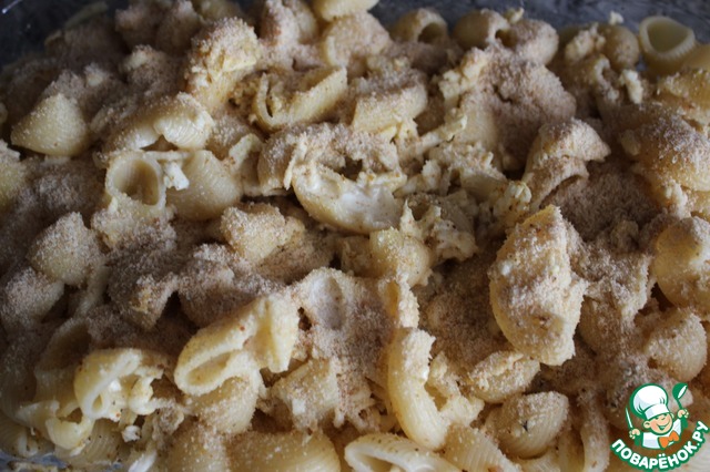Духовку выставить на 200 градусов. Макароны перемешать с сыром и мускатным орехом. Выложить в форму для запекания, смазанную растительным маслом. Полить сливками и посыпать панировочными сухарями. Выпекать в духовке 20 минут.