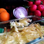 Очень простой в приготовлении рецепт, продукты всегда есть в холодильнике. Получается очень нежно, сырно и сытно с хрустящим верхом. Для меня это основное блюдо, ну а для моих мужчин - это гарнир.