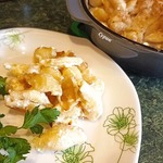 По истечении времени достаем и подаем. Готово. Очень сливочно, сырно, верх хрустящий.