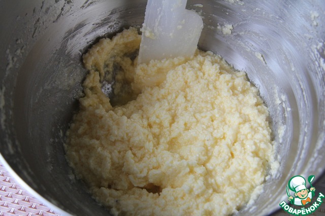 Размягченное масло взбить с сахаром и солью до пышного состояния.