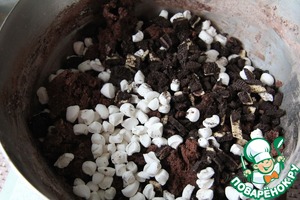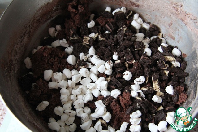 "Oreo" измельчить на кусочки и добавить с маршмеллоу к тесту. Если у вас не окажется мини-маршмеллоу, то можно нарезать обычное на маленькие кусочки, как это сделала я.