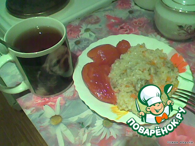 Всё! Дополняем блюдо консервированными в томатном соке помидорами, наливаем чай и ужинаем!