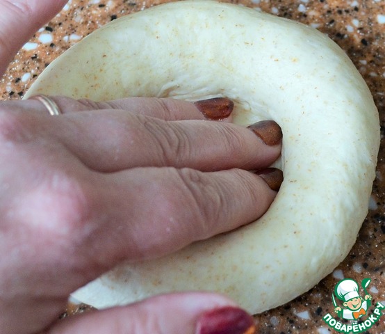 Тесто обмять. Разделить на 5 одинаковых кусков по 150 г.