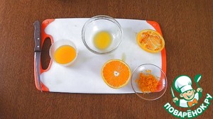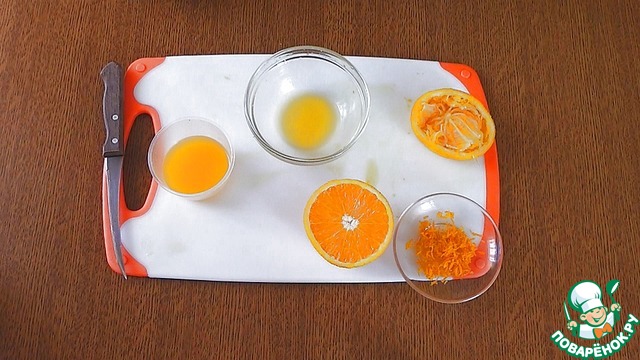 С половины апельсина на терке снять цедру и выжать сок. 50 мл сока понадобится для теста, а около 2 ст. л для глазури.
