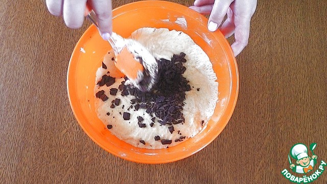 Тем временем, нарезать шоколад, оставив немного для украшения.