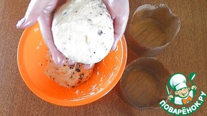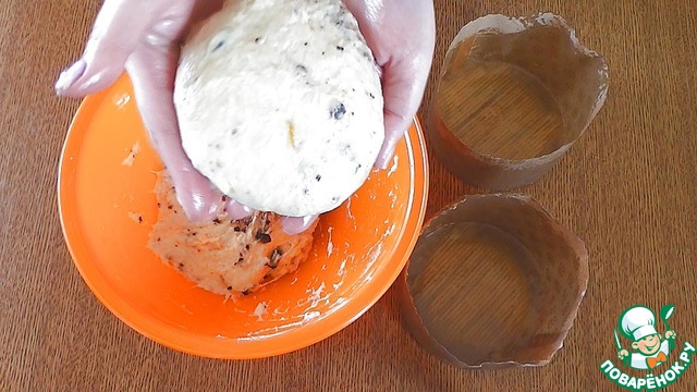 Руками, смазанными маслом, формирую куличи и кладу в формы. Накрою и дам постоять.