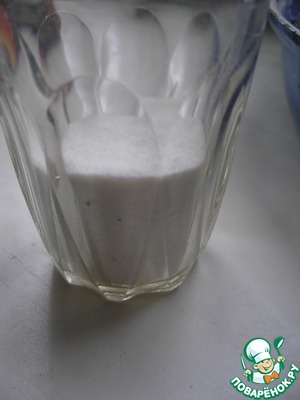 Прежде всего приготовлю рисовую муку из зёрен риса (можно взять и готовую), для этого использовать кофемолку, перемолоть рис до пудрообразного состояния. У меня получилось половина стакана. Чуть позже мне понадобится 3 ст. л. рисовой муки.