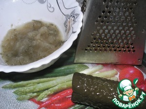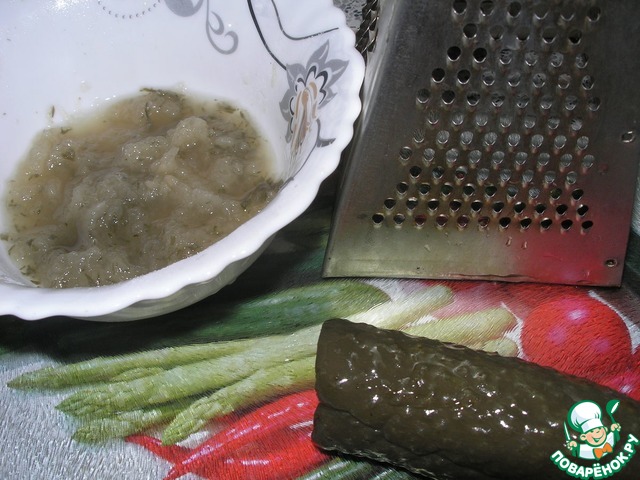 Теперь на мелкой тёрке натираю 1 маринованный огурец.