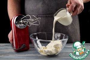 Соедините творожную и яичную массы, смешайте с помощью миксера.