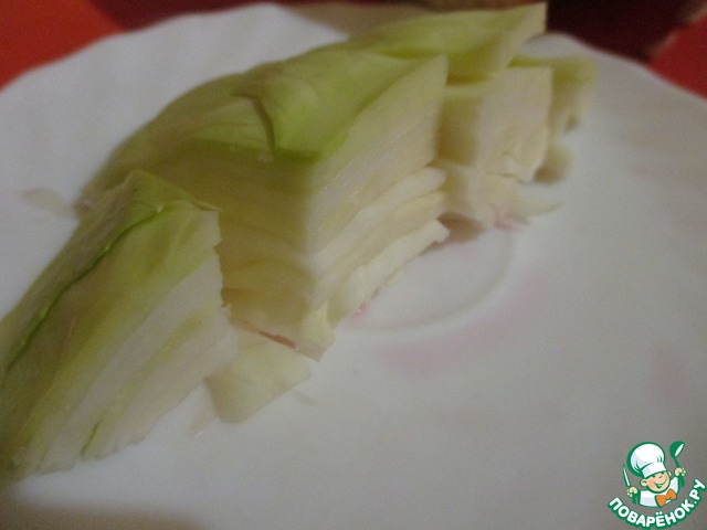 Капусту нарезать кусками. Я резала не очень большими, мне так больше нравится.