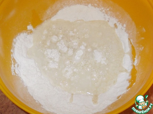 Начинаем замес теста и вливаем растительное масло. Тесто получается очень податливое и мягкое.