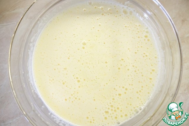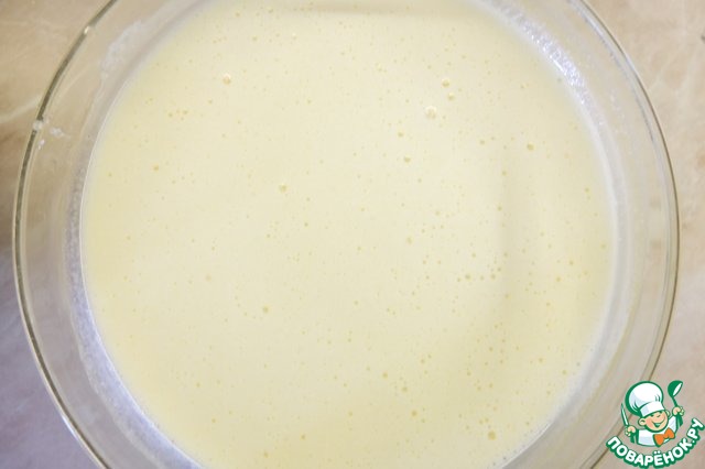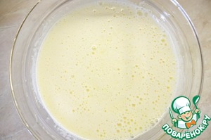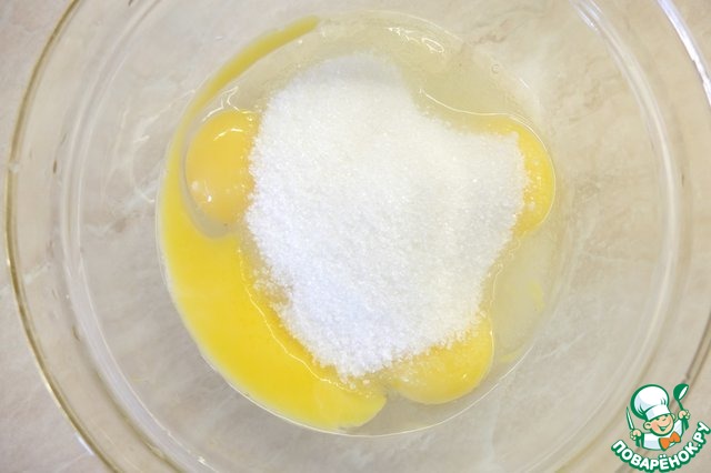 Желтки, яйцо, сахар, ванильный сахар взбиваем до увеличения в объеме.