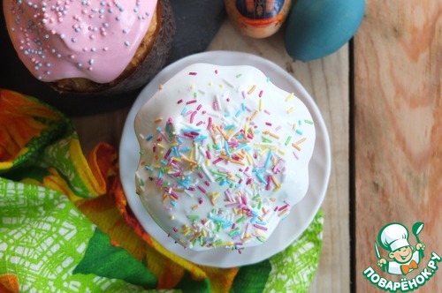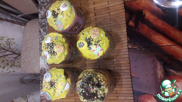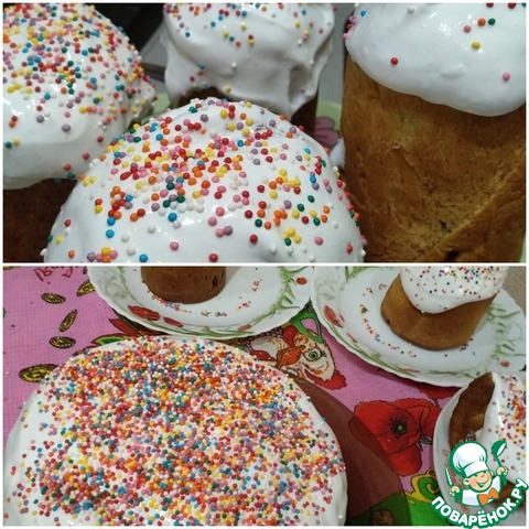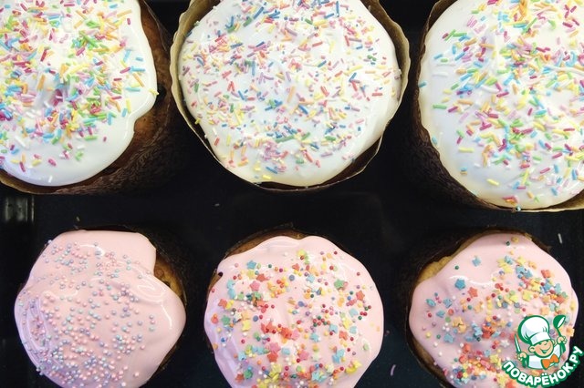 Покрываем глазурью куличи.