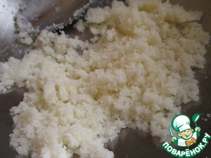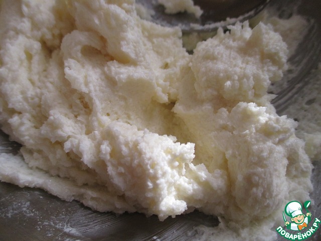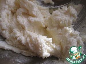 Добавить творог мягкий, без крупинок. Растереть с сахарно-масляной массой.