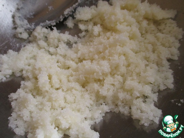 Всё тщательно перемешать. Всыпать соду и залить её соком лимона. Дать пройти реакции до конца и перемешать хорошенько.