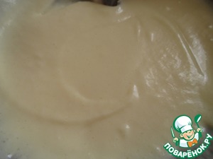 По одному вбить яйца комнатной температуры, каждый раз размешивать до однородности и гладкости