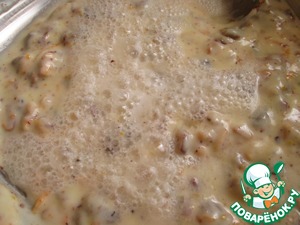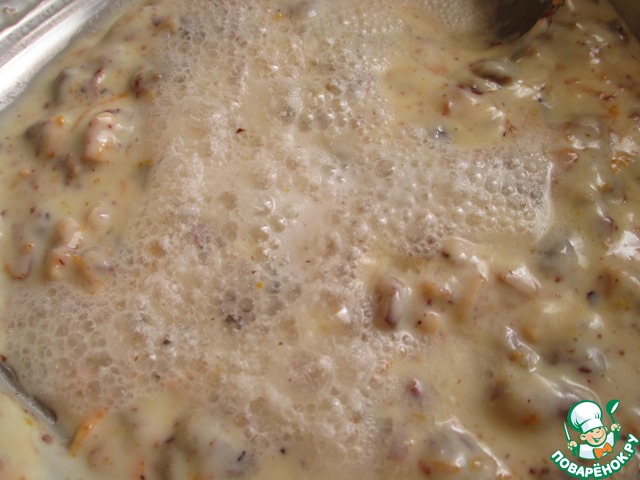 Орехи слегка обжарить и раздробить на кусочки, но не мелко!