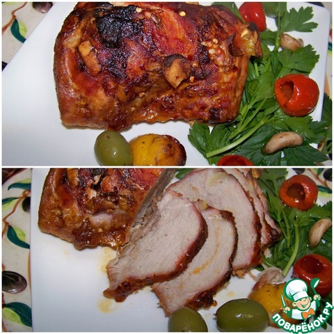 Этой смесью смазать корейку, завернуть в фольгу и запекать при 180-200° в течение 1-1,5 часов.