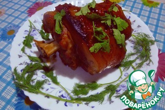 Ещё минут через 20 проверьте мясо на готовность проткнув шпажкой или зубочисткой. Из прокола должен пойти прозрачный сок, если он розовый - продолжайте готовить.
