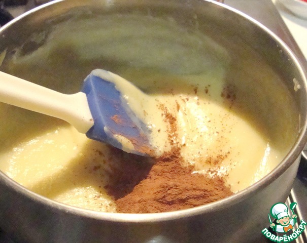 Всыпать какао, размешать до однородности.