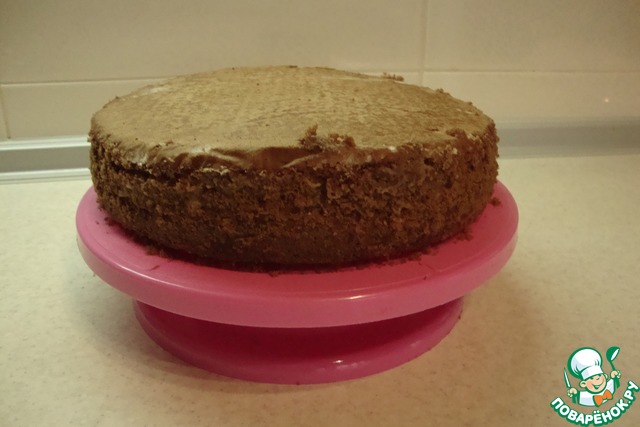 Бока торта обсыпать крошкой от бисквита, которая образуется при разрезании. -