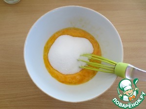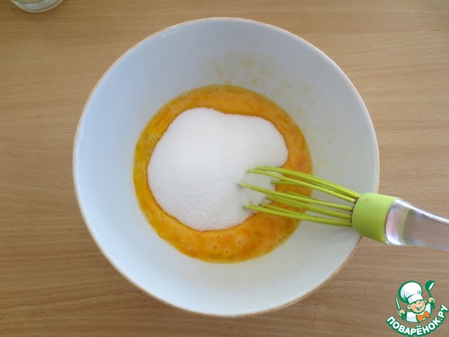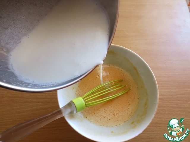 • Постепенно добавляем в яично-сахарную смесь молоко, продолжая взбивать.