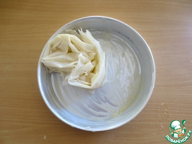 Круглую форму, диаметром 24 см смазать растопленным сливочным маслом
